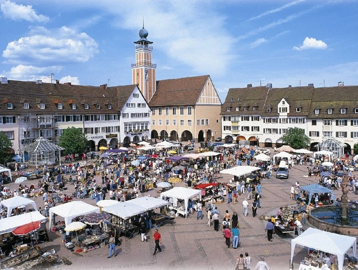 Auf dem Oberen Marktplatz mit seinen beiden Brunnen finden die unterschiedlichsten Feste und Märkte statt.