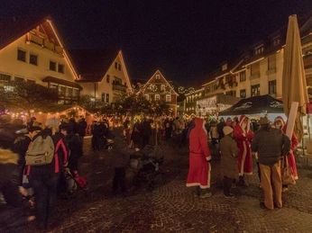 Der Kirchplatz verwandelt sich dann wieder in ein festlich geschmücktes Weihnachtsdorf. Die liebevoll dekorierten Hütten, die lebensechte Krippe und das abwechslungsreiche Bühnenprogramm sorgen für eine ganz besondere Weihnachtsstimmung.