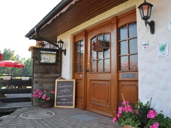 Wir bleiben auf dem Renchtalsteig - über einen schmalen, naturbelassenen Pfad wandern wir rechts weiter bergauf. Wer will, kann, oben angekommen, bei der überdachten Rastmöglichkeit eine kleine Pause einlegen und den schönen Ausblick genießen.