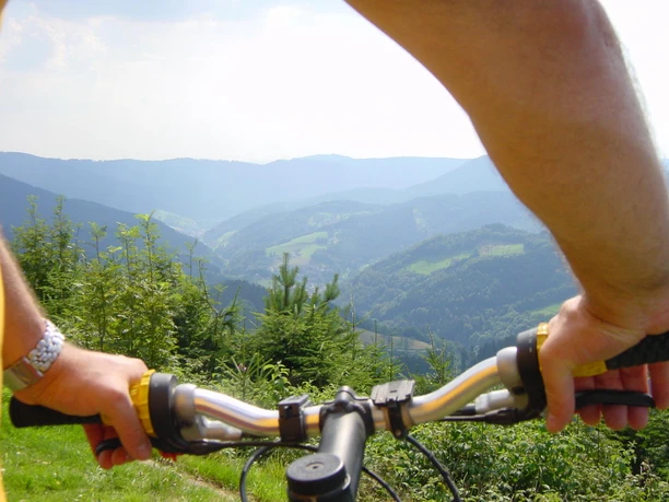 Start der Mountainbiketour ist der Bahnhof in Bad Griesbach. Von dort aus folgen Sie der B 28 entlang und biegen am Ortsausgang von Bad Griesbach links auf die Straße Hofacker ab. Der Straße folgen Sie nun bis zum Hotel Dollenberg. Dort haben Sie die erste Möglichkeit zu einer Pause. Von dort aus fahren Sie über den Parkplatz des Hotels weiter auf den Dissenhofweg. Diesem folgen Sie und fahren danach weiter über den Maierslochweg bis zum Höhengasthaus Herbstwasen. Auch hier lässt es sich bei herrllichem Ausblick von der Terrasse gut pausieren. Unterhalb des Gasthauses geht es rechts über den geschotterten Waldweg weiter zum Weiherplatz. Danach gelangen Sie über die Fischfelsenhütte und den Mittlereren Brandweg zur Renchtalhütte. Erleben Sie hier den einzigartigen Panoramablick von der Terrasse aus und kosten Sie die Schwarzwälder Spezialitäten. Von dort geht es über die geteerte Fahrstraße hinunter über den Breitenberg zum Ausgangspunkt dem Bahnhof in Bad Griesbach. Zum Abschluss der Tour haben Sie die Möglichkeit in der Döttelbacher Mühle etwas stärkendes einzunehmen.